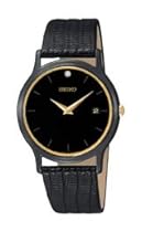 This watch looks classier and more elegant in person than in the current picture provided. The numeral indicators (lines) are barely noticeable under normal lighting making this Seiko look similar to the more expensive Movado watch ( all black face ). Thin and comfortable on the wrist with a good quality leather band.