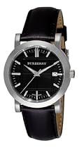 Britain's leading fashion brand known with their check design patterns was founded by Thomas Burberry in 1856 and is loved by many celebrities around the world. This leather strap mens timepiece displays a black face with luminescent hands and a date. Stainless steel case Black dial Stick indice Black leather strap Buckle clasp Water resistant to 165 feet.